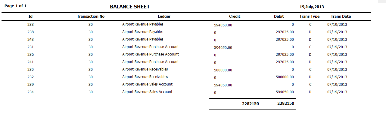 get the net figure per ledger , per transaction and gross figure for the whole of the application id on the balance sheet and